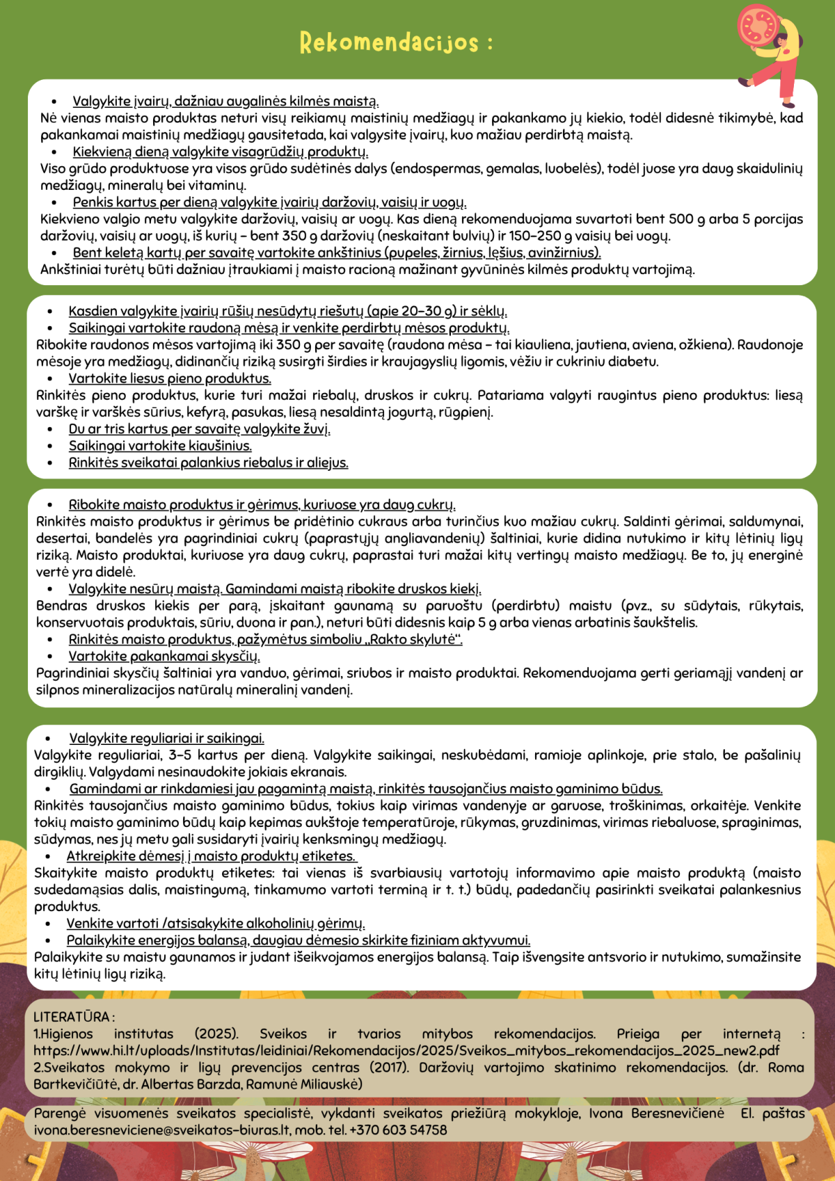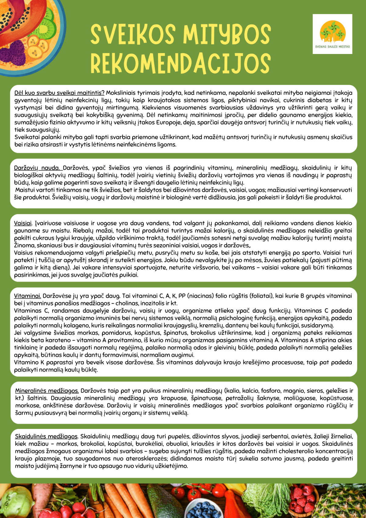 Siūlome perskaityti sveikos mitybos rekomendacijas ir nepamiršti sveikai maitinis, rūpintis savo sveikatą.
