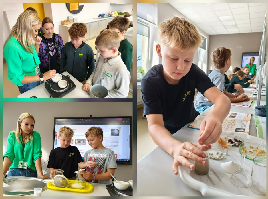 Šiemet 4-tokai kartą per mėnesį dalyvaus laboratoriniuose užsiėmimuose su gamtos mokslų mokytoja. Pirmojo užsiėmimo metu vaikai mokėsi mišinių atskyrimo būdų: rankomis atskyrinėjo stambesnes daleles, analizavo garinimo procesą ir druskos kristalizaciją, sėmėsi patirties filtruodami, taikė nusistovėjimo ir nupylimo metodą, sijojo medžiagas, o metalus atskyrinėjo magnetu.