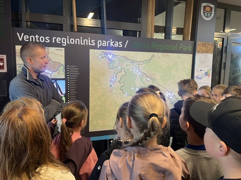 Rugsėjo 25 d. 4a klasės mokiniai lankėsi Ventos regioniniame parke. Juos pasitiko parko darbuotojas, kuris įdomiai papasakojo apie parko įžymias vietas, krašto gamtą, istoriją ir geologiją. Vaikai taip pat apsilankė Šaltiškių molio karjeruose. Čia jie susipažino su unikalia vieta – čia kasamas molis, susiformavęs prieš milijonus metų. Ketvirtokai sužinojo, kam jis naudojamas ir kaip transportuojamas į šalia esančią cemento gamyklą. Didžiausią įspūdį paliko veikla Papartynės atodangoje. Padedami gido mokiniai išsikasė tikrų suvenyrų iš amžių glūdumos – prieš 150 milijonų metų gyvenusių gyvūnų suakmenėjusių liekanų - fosilijų. Kelionės pabaigoje mokiniai užsuko į Papilės miestelį, kuriame aplankė apžvalgos bokštą, beždžionių tiltą, penkiolikos kamienų liepą bei Papilės piliakalnį, kur yra palaidotas Lietuvos istorikas ir rašytojas Simonas Daukantas.