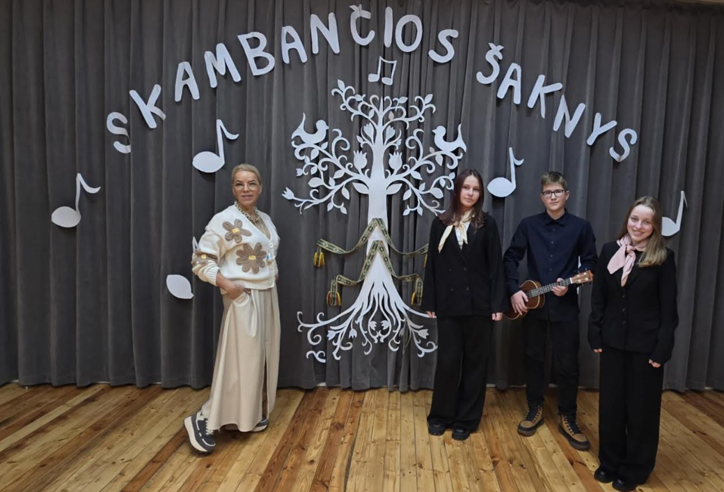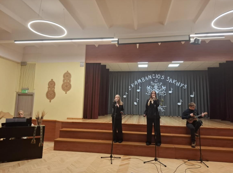 Šiaulių „Romuvos“ progimnazijoje vyko dainos ir šokio festivalis „Skambančios šaknys“, skirtas paminėti 2025-uosius - Lietuvių liaudies dainų metus. Renginyje mūsų progimnazijai atstovavo 8 klasės mokiniai Dileta Vičaitė, Armandas Dulevičius ir Kamilė Buivydaitė.