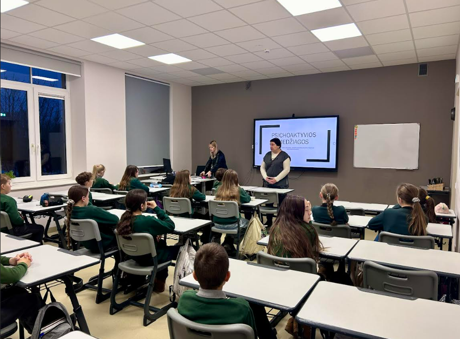 Spalio ir lapkričio mėnesiais mūsų mokykloje vyko specialios pamokos 4–8 klasių mokiniams, skirtos psichoaktyvių medžiagų, alkoholio ir tabako prevencijai. Pamokų tikslas – suteikti mokiniams žinių apie šių medžiagų žalą fizinei ir psichinei sveikatai, padėti atpažinti rizikingas situacijas, stiprinti kritinį mąstymą bei ugdyti atsparumą neigiamai bendraamžių įtakai.