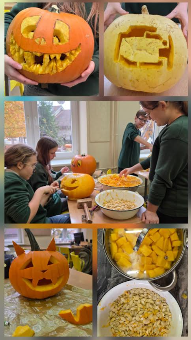 Technologijų pamokos atskleidė mokinių kūrybiškumą ir paskatino atsakingą požiūrį. Čia mokiniai gilinosi į moliūgo panaudojimą be atliekų principu. Jie ne tik skaptavo moliūgus meninėms idėjoms realizuoti, bet ir panaudojo moliūgo vidaus minkštimą saldainių gamybai – džiovindami gabaliukus, išmirkytus sirupe. Nemažiau kruopštus darbas laukė perrenkant, plaunant ir džiovinant moliūgo sėklas, kurios galiausiai virto dekoratyviniais karoliais paukšteliams. Tai buvo praktinio darbo ir tvarumo pamoka.