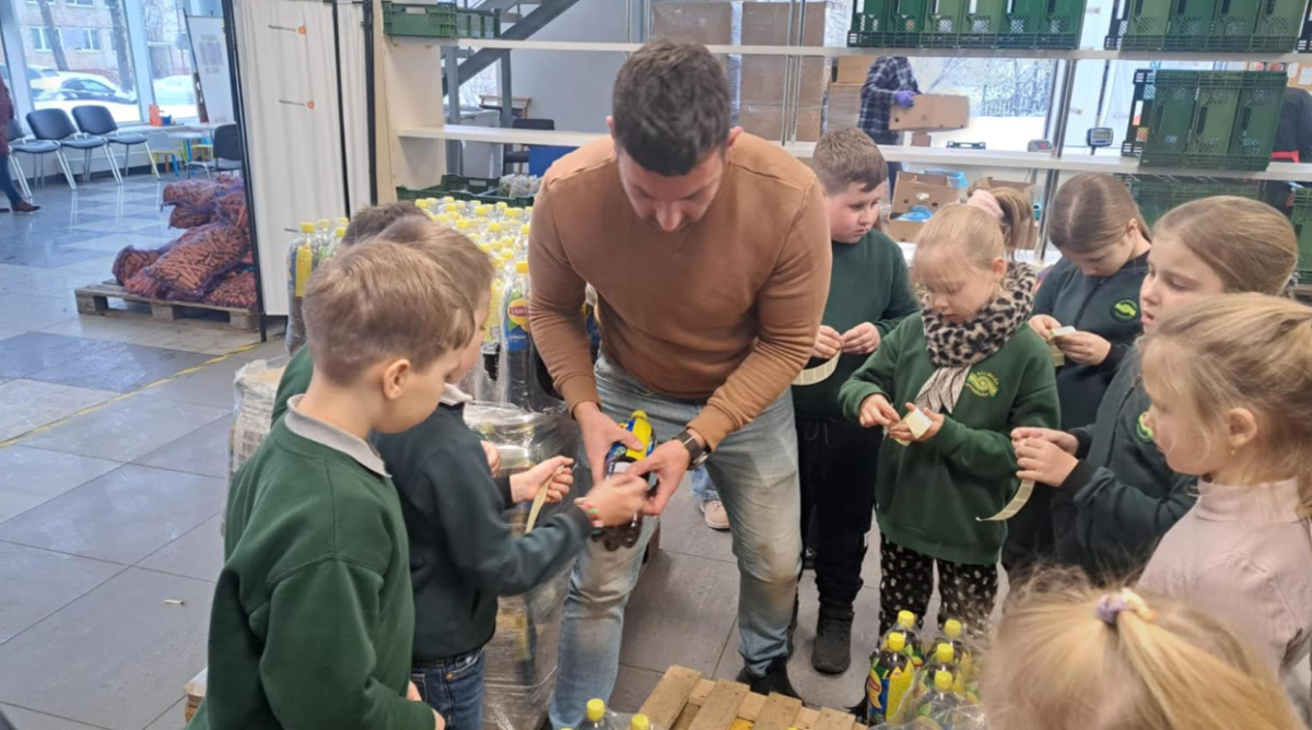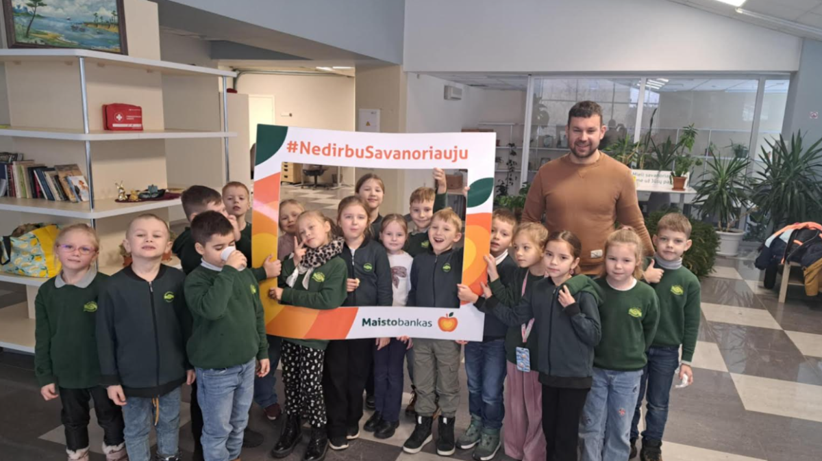 Po teorinės dalies mokiniai iškeliavo į labdaros fondą „Maisto bankas“ Šiaulių padalinyje, kurio vadovas – 1b klasės mokinės Melitos Eirošiūtės tėtis Mamertas Eirošius. Čia vaikai turėjo puikią galimybę susipažinti su tėvelio profesija, sužinoti, kokia veikla užsiima „Maisto bankas“, kaip jis kovoja su maisto švaistymu ir padeda sunkiau gyvenantiems žmonėms.