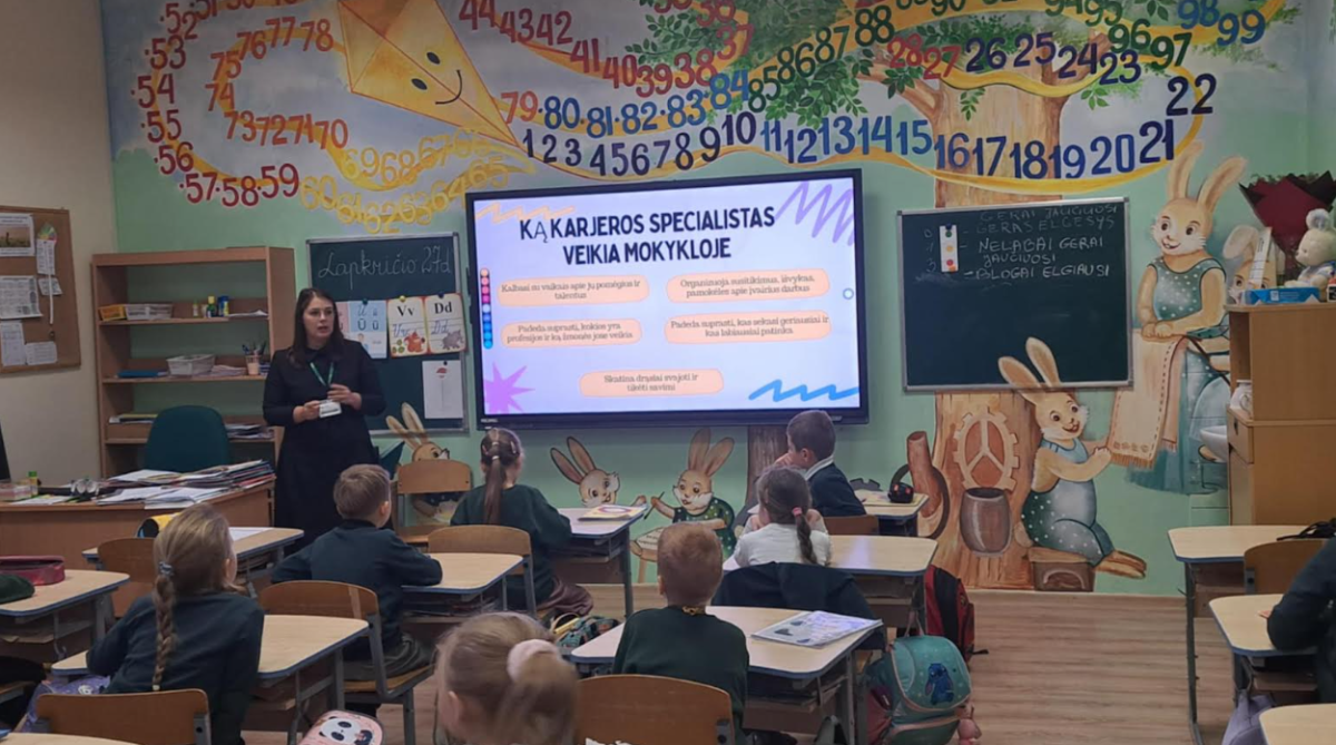 Minint Europos atliekų mažinimo savaitę ir bendradarbiaujant su progimnazijos karjeros specialiste Kristina, 1b klasės mokiniai dalyvavo integruotose veiklose, skirtose tėvelių profesijų pažinimui ir tvarumo temai. Karjeros specialistė mokiniams pristatė įvairias profesijas, papasakojo, kaip jas galima „pasimatuoti“, bei supažindino su savanorystės galimybėmis. Vėliau vyko viktorina, kurioje mokiniai atpažino profesijas, aiškinosi, kuo jos skiriasi ir kuo yra ypatingos.