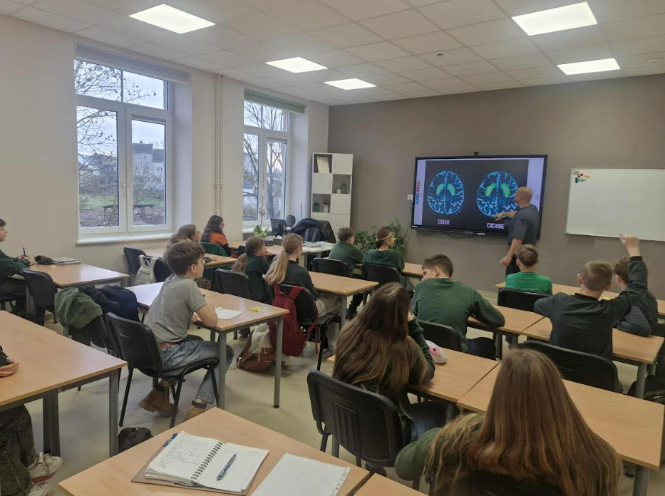 Pamokų metu mokiniai sužinojo daugiau apie psichoaktyvias medžiagas, jų poveikį sveikatai bei galimas pasekmes kasdieniam gyvenimui. Lektorius su mokiniais diskutavo apie atsakingus pasirinkimus, aplinkos ir draugų įtaką, o interaktyvi veikla – Kahoot žaidimas – leido mokiniams ne tik pasitikrinti žinias, bet ir aktyviai įsitraukti į temą.