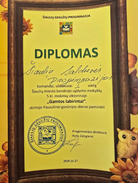Lapkričio 27 d. Šiaulių Gegužių progimnazijoje vyko Šiaulių miesto 5 klasių mokinių viktorina „Gamtos labirintai“. Viktorinos metu mokiniai sprendė gamtos mokslų užduotis, gilino žinias apie gyvūniją ir gamtos saugojimą.