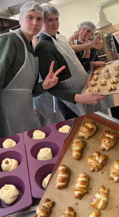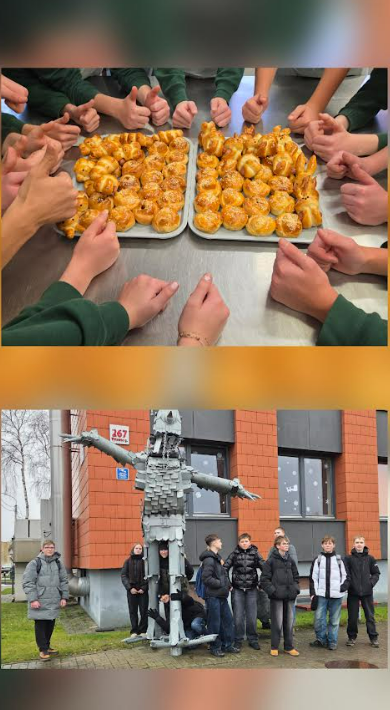 Gruodžio 10 d. 8a klasės mokiniai turėjo išskirtinę galimybę technologijų pamoką perkelti į Šiaulių TMC Prekybos ir verslo skyriaus praktinio mokymo virtuvę. Čia mokiniai susipažino su mielinės tešlos paruošimu bei patys kepė įvairių formų bandeles. Tešla virto gėlėmis, kiškučiais, mumijomis.