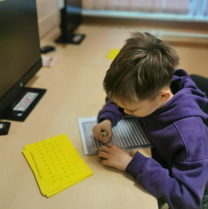 3C klasės mokiniai dalyvavo „Spindulio“ bibliotekoje vykusiame edukaciniame užsiėmime apie Brailio raštą. Užsiėmimo metu mokiniai sužinojo daugiau apie neregių pasaulį, susipažino su Brailio rašto ypatumais ir jo reikšme. Praktinės veiklos metu jie patys bandė rašyti žinutę Brailio raštu bei patyrė, kaip jaučiasi neregiai – ėjo užrištomis akimis, naudodamiesi baltąja lazdele.
