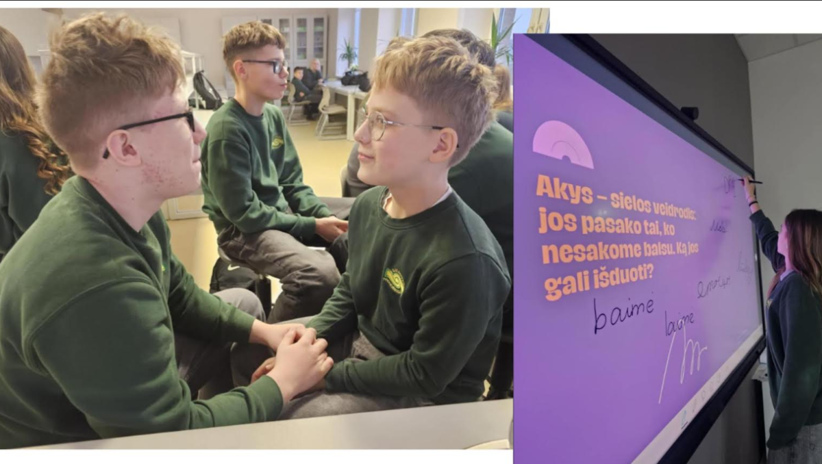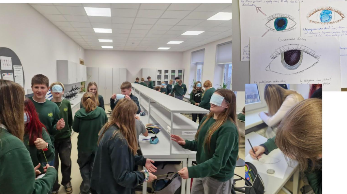 Gruodžio mėnesį 7C klasės mokiniai išbandė fenomenais grįstą metodą bendradarbiaujant trijų dalykų mokytojais. Pasirinktas fenomenas „Akis“ skatino mokinius kelti probleminius klausimus apie regėjimą, žmogaus jausmą ir sveikatą bei ieškoti atsakymų iš skirtingų perspektyvų. Etikos pamokose fenomenas „Akis“ tapo priemone nagrinėti žmogaus emocijas, vidinį pasaulį ir tarpusavio santykius. Pamokų metu mokiniai aiškinosi, ką galima suprasti iš žmogaus akių, diskutavo apie emocijas ir neverbalinį bendravimą. Praktinių veiklų metu mokiniai žiūrėjo vieni kitiems į akis, žaidė žaidimus, kurie skatino pasitikėjimą, empatiją ir bendravimą. Atlikdami kūrybinę refleksiją mokiniai piešė, ką norėtų pasakyti jų akys, taip išreikšdami savo jausmus ir mintis. Gyvenimo įgūdžių pamokose mokiniai nagrinėjo, kokią žalą mūsų akims daro mėlyna ekrano šviesa, skaičiavo, kiek vidutiniškai laiko per parą praleidžiama prie ekranų, kokią įtaką tai daro mūsų sveikatai. Mokėsi sąmoningumo, atsakingo technologijų naudojimo ir sveikų įpročių formavimo. Fizinio ugdymo pamokose mokiniai aiškinosi, kaip paprastai, kasdienėje veikloje taikomi metodai gali stiprinti ir saugoti savo regėjimą. Jie mokėsi atlikti akių pratimus, susipažino su metodais ir priemonėmis, padedančiomis išlaikyti gerą regėjimą bei taisyklingą laikyseną. Papildomai mokiniai turėjo galimybę dalyvauti patyriminėje edukacijoje „Tyla netyla“ . Jos metu jie trumpam galėjo pažvelgti į pasaulį kitaip – patirti, kaip jaučiasi žmogus, negalintis matyti, ir kokius jausmus tai sukelia. Ši patirtis paskatino gilesnį empatijos ir supratimo ugdymą.