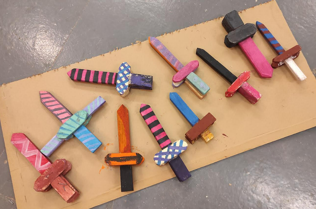 Ši pamoka kvietė mokinius pažvelgti į Lietuvos viduramžių karybą per kūrybinę ir praktinę veiklą. XIII-XIV amžiuje lietuvių kariai naudojo trumpuosius kalavijus- kompaktiškus, greitus ir kovai pritaikytus ginklus, kurie buvo svarbi jų karinės taktikos dalis. Pamokoje mokiniai ne tik susipažino su šių ginklų istorine reikšme, forma ir funkcija, bet ir reflektavo savo pačių sukurtus trumpųjų kalavijų modelius. Tai suteikė galimybę suprasti, kaip technologiniai sprendimai, medžiagos ir konstrukcija veikė kovos būdus bei karių kasdienybę. Ši integruota veikla jungia istorijos žinias su praktiniu kūrybiniu procesu, skatino analizuoti, lyginti ir vertinti, o kartu leido patirti viduramžių pasaulį per savo rankomis sukurtą objektą.