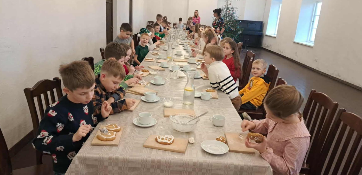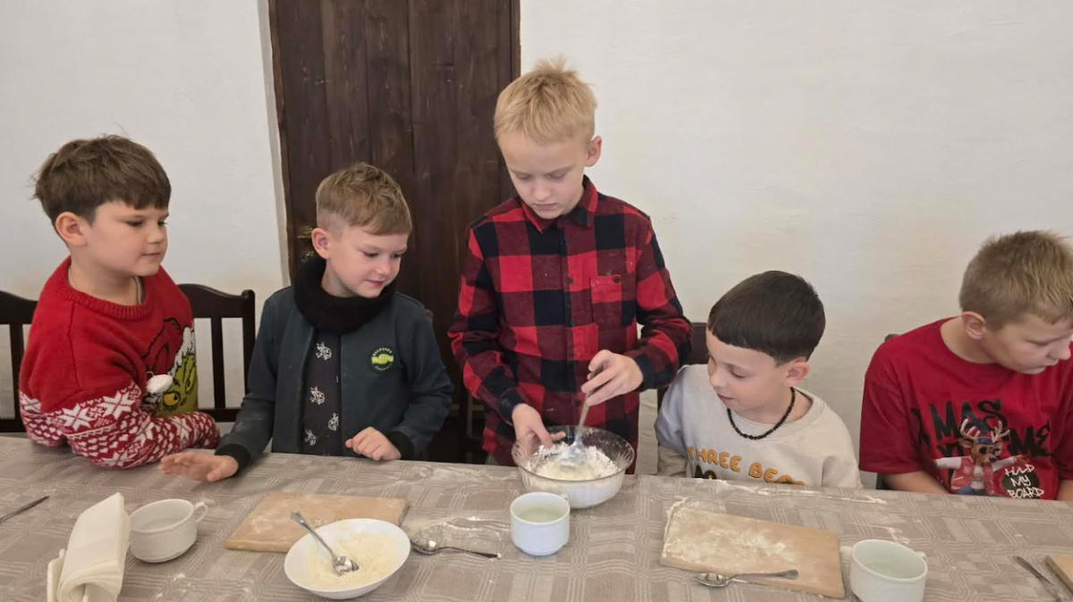 Po pažintinės dalies vaikai buvo pakviesti kepti meduolius pagal senovines tradicijas. Jie patys lipdė norimų formų meduolius, stebėjo, kaip šeimininkė juos pašauna į krosnį, mokėsi iš cukraus pudros pasigaminti glajų ir juo puošė savo kepinius. Kol meduoliai aušo, šeimininkė pakvietė mažuosius svečius gaminti kūčiukus, kuriuos vaikai noriai lipdė ir pjaustė. Netrukus kūčiukai buvo iškepti, o vaikai vaišinosi jais kartu su gardžiai kvepiančia arbata.