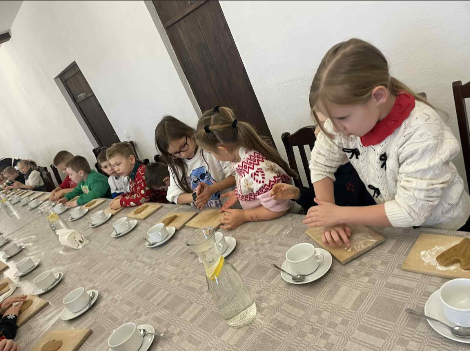 Gruodžio 18–19 d. 1a, 1b, 1c ir 2b klasių mokiniai kartu su savo mokytojomis vyko į edukacinę išvyką „Kalėdiniai papročiai ir skoniai“ Radviliškio rajone. Skėmių traktieriuje visų laukė šeimininkė Marcelė, kuri akordeono skambesiu pakvietė dalyvius užeiti į vidų. Svečius ji šiltai priėmė, supažindino su krosnimi, senovėje naudotais virtuvės ir buities prietaisais. Mokiniai klausėsi su dideliu susidomėjimu, aktyviai dalyvavo veiklose ir atsakinėjo į šeimininkės užduodamus klausimus.