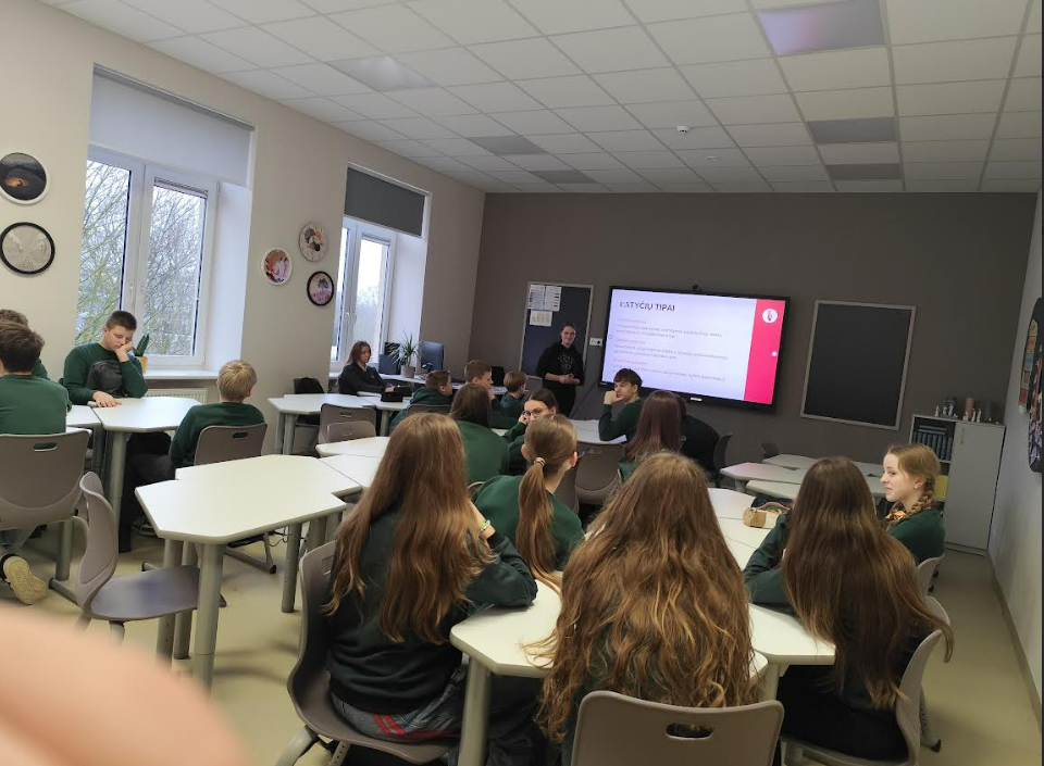 2025 m. gruodžio 8 - 9 dienomis mūsų mokyklos aštuntokai dalyvavo gyvenimo įgūdžių pamokose, kurias vedė VšĮ Žmogiškųjų išteklių stebėsenos ir plėtros biuro specialistė Viktorija Lešaitė. Užsiėmimų metu mokiniai gilinosi į temą „Patyčios ir saugi bendravimo kultūra“, aptardami, kaip atpažinti skirtingas patyčių formas ir kur jos gali pasireikšti tiek mokykloje, tiek virtualioje erdvėje.