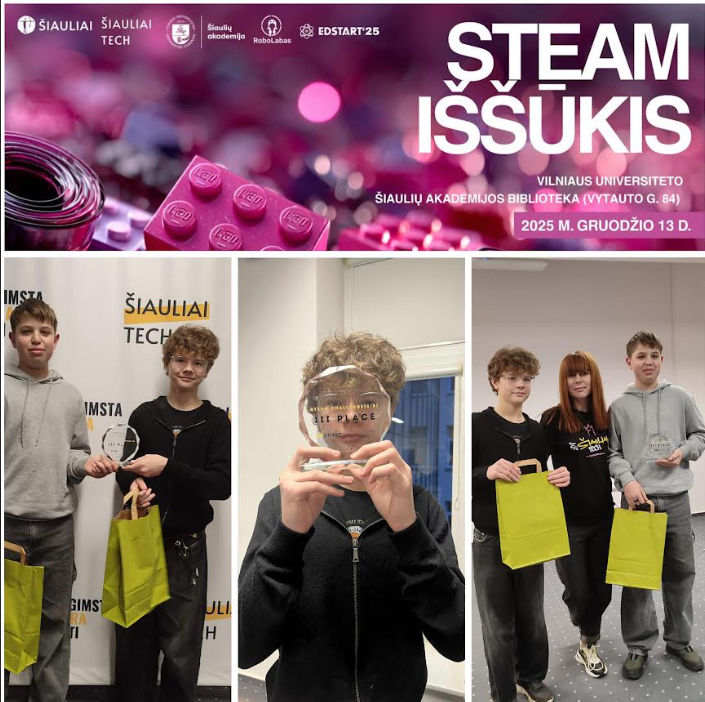 Šiaulių Salduvės progimnazijos mokiniai dalyvavo tarptautinėse robotikos varžybose „ROBOMŪŠIS 2025“. Renginyje mokyklą atstovavo net 4 komandos – 8 mokiniai, varžęsi 5–8 klasių STEAM Challenge kategorijoje.