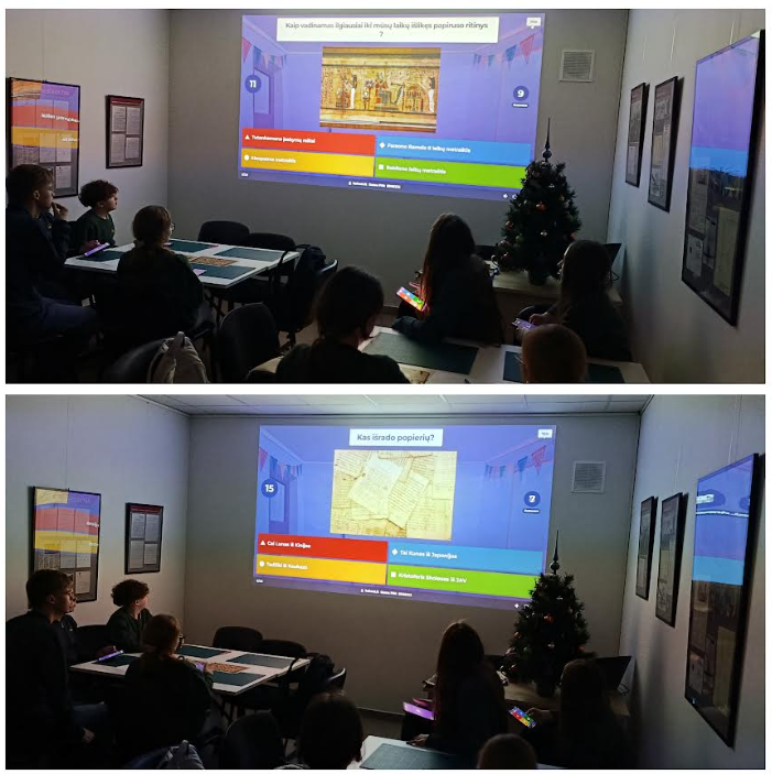 "Kahoot" viktorinoje. Ši patirtis leido mokiniams atrasti dar nepažintą profesiją, praplėsti akiratį apie archyvo veiklą ir geriau suprasti Šiaulių krašto dokumentinio paveldo reikšmę.