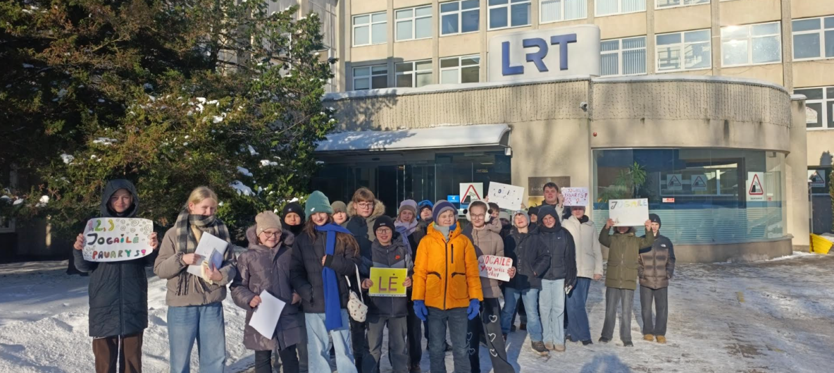 5a klasės mokiniai vyko į LRT televiziją palaikyti savo bendraklasės Jogailės Vadalauskaitės „Lietuvos tūkstantmečio vaikų“ laidos filmavime.