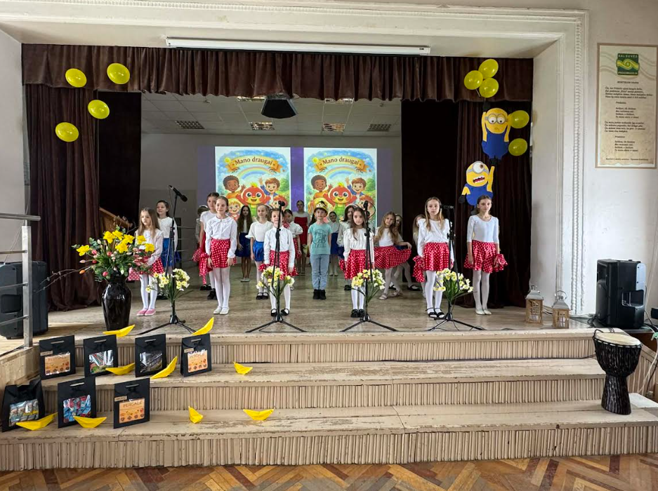 Programą jungė pasakų personažais tapę vedantieji: Danielė Vičiatė, Titas Krajevas, Barbora Goštautaitė, Luka Žegunytė, Atėnė Pažėraitė, Saulė Bagdonavičiūtė, Austėja Sinkutė ir Hatseliuk Mykhailo. O dainų konkursą atidarė 1-4 klasių muzikos studijos mokiniai, atlikę dainą „Mano draugai“ - smagią istoriją apie Pimpačkiuko kelionę draugystės link.