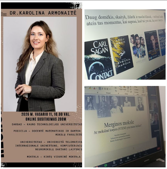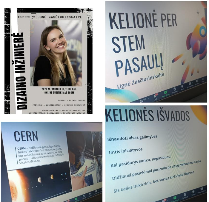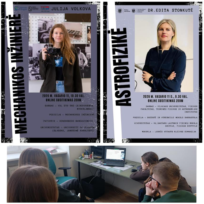 Nuotoliniame susitikime su keturiomis jaunomis STEAM sričių specialistėmis dalyvavo 8a klasės mokiniai Auksė, Akvilė, Ieva ir Armandas. Jie klausėsi įkvepiančių istorijų apie drąsius pasirinkimus, kelią į mokslą, technologijas ir inžineriją bei sėkmę lydinčius iššūkius. Mokiniai pripažino, kad nuoširdūs specialisčių pasakojimai paskatino mąstyti plačiau, nebijoti bandyti ir drąsiai ieškoti savo kelio, nes smalsumas, atkaklumas ir tikėjimas savimi atveria duris į ateities galimybes.