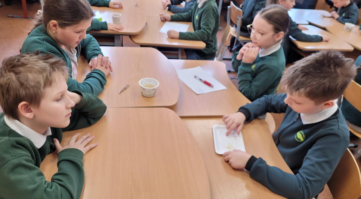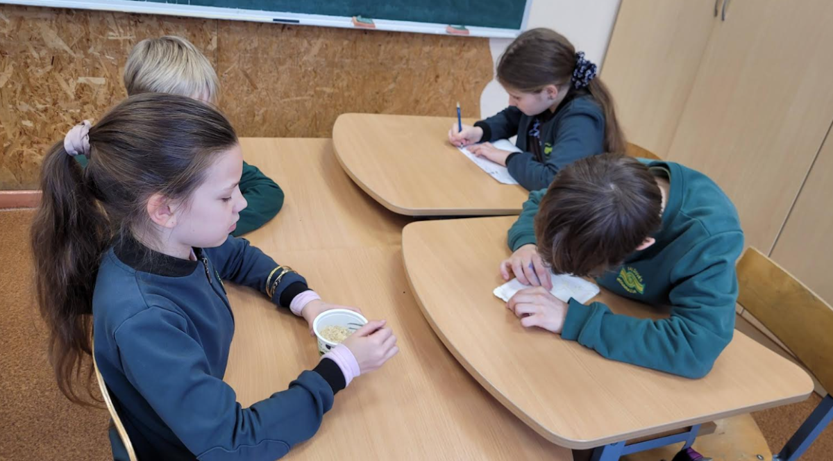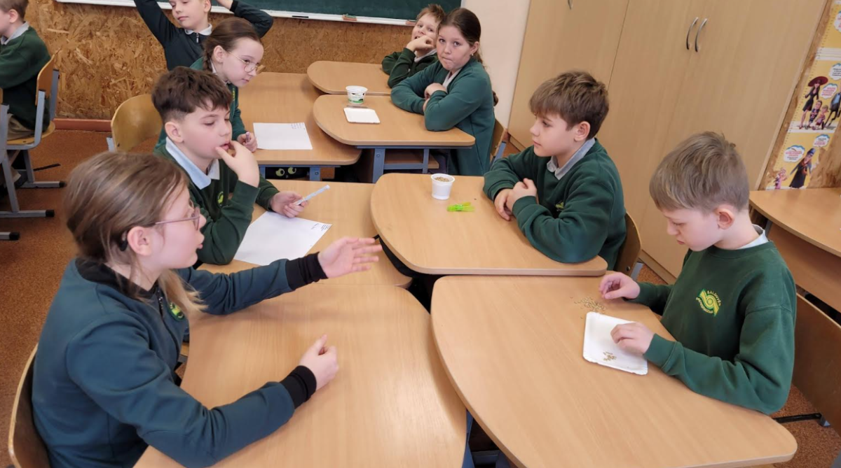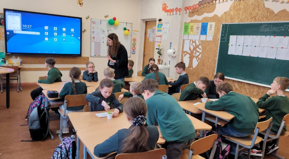 3b klasės integruota gamtos ir matematikos pamoka tapo įdomia ir įtraukiančia veikla. Naudodami įvairius prietaisus – medinį ir plastmasinį skalbinių segtuką, pincetą, žirklutes, šaukštelį bei skirtingas kruopas (perlines, grūdus, avinžirnius, grikius, ryžius) – mokiniai trumpam pavirto mažais paukščiukais, o įrankiai tapo jų snapeliais. Dirbdami grupelėse po keturis, vaikai pasiskirstė vaidmenimis: vienas per 30 sekundžių su duota priemone iš indelio dėjo „maistą“ į lėkštę, antrasis stebėjo laiką, trečiasis skaičiavo, kiek kruopų atsidūrė lėkštėje, o ketvirtasis atsakingai viską užrašinėjo. Atlikus užduotį, grupelės keitėsi vietomis ir taip judėjo ratu, kol sugrįžo į savo pradines vietas. Vėliau aptarėme rezultatus ir darėme išvadas – kurio „paukščio“ snapas vienu kartu galėjo sulesti daugiau maisto ir kodėl.