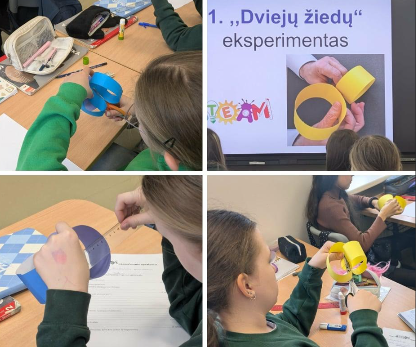 6a klasės mokiniai dalyvavo praktinėje matematikos pamokoje, kurioje atliko įdomų geometrinį eksperimentą su dviem vienodais žiedais.