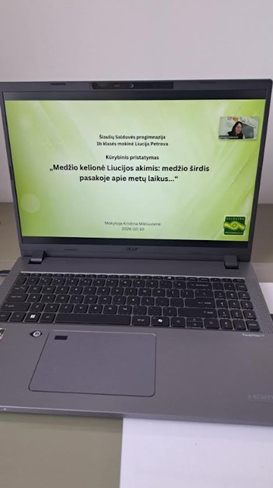 Vasario 10 d. Salduvės progimnazijos 1b klasės mokinė Liucija Petrova dalyvavo PUG ir 1–4 klasių mokinių nuotolinėje respublikinėje konferencijoje „Medžio (-ių) kelionė per metų laikus –