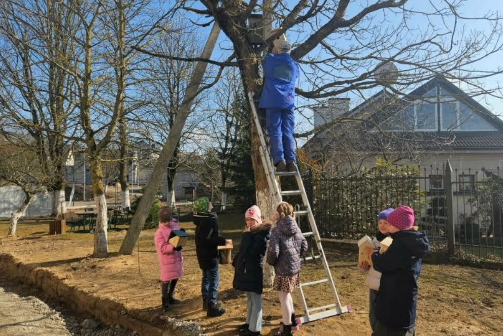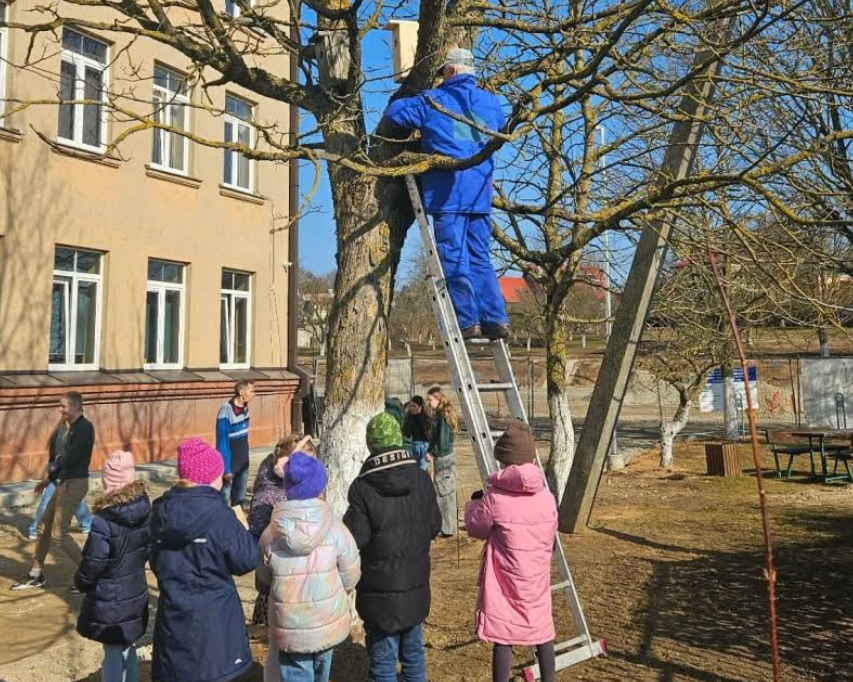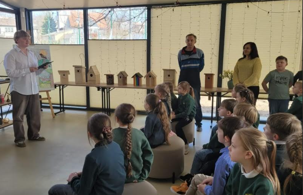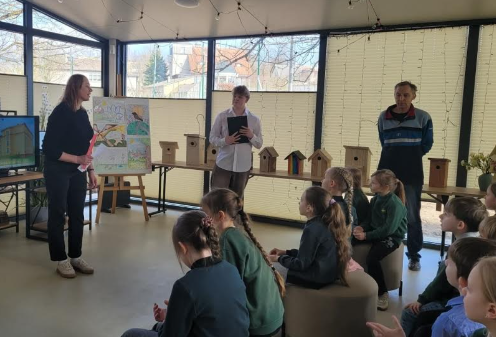 Kovo 17 d mūsų mokyklos terasa prisipildė pavasario nuotaikos – vyko inkilų kėlimo šventė!