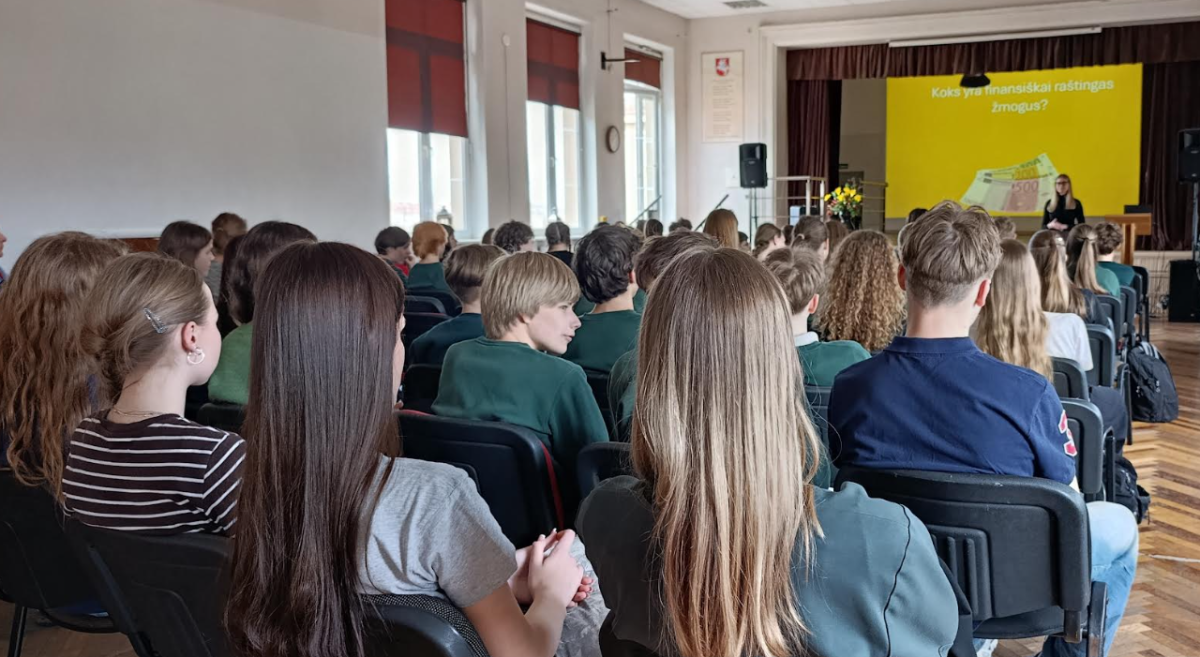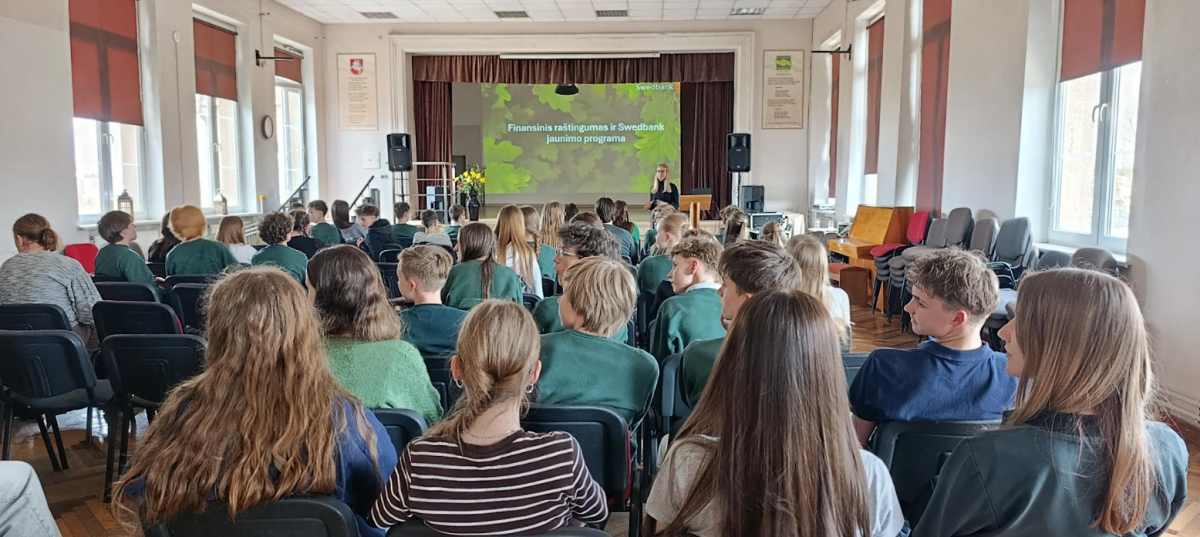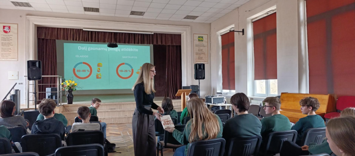 Tęsiant šią temą, mokykloje lankėsi viešnia iš Swedbank, kuri aštuntokams papasakojo apie saugų naudojimąsi interneto banku, atsakingą skolinimąsi bei taupymo svarbą. Mokiniai taip pat susipažino su jaunimo programa, jos teikiamomis naudomis ir galimybėmis. Aktyviausi mokiniai buvo apdovanoti simbolinėmis dovanėlėmis.