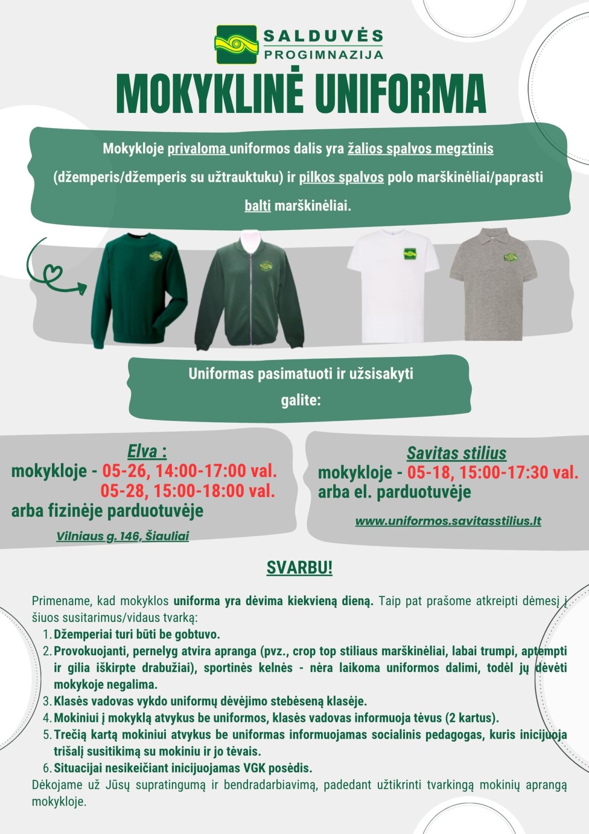 📌 Primename, kad mokyklinė uniforma yra privaloma ir dėvima kiekvieną dieną.