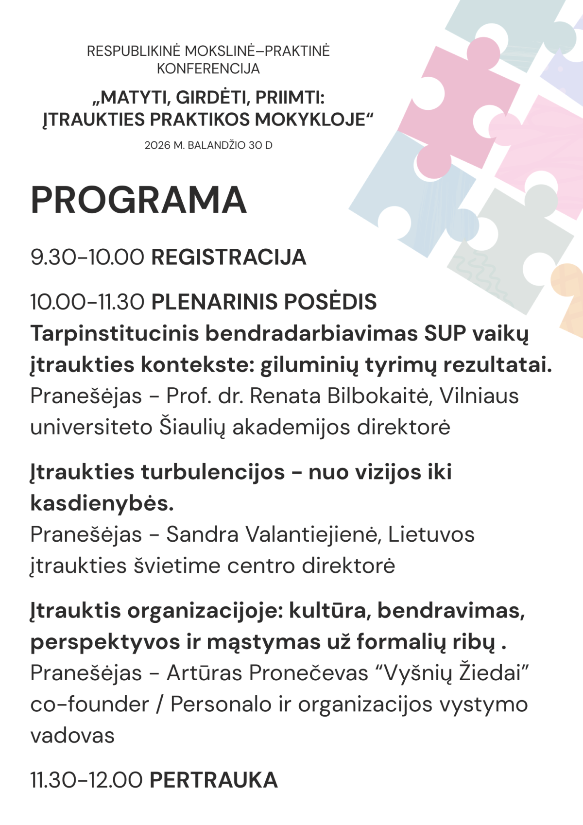 Konferencija ,,Matyti, girdėti, priimti. Įtraukties praktikos mokykloje"