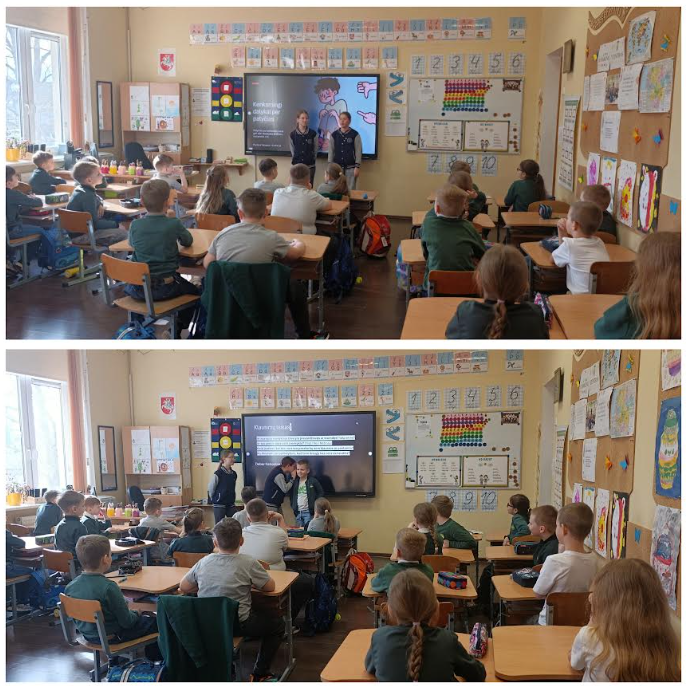 Pirmojoje pamokoje buvo kalbama apie patyčias ir kokios jos gali būti. Penktokės pačios dalijosi savo patirtimis, diskutavo su pirmokais ir pabrėžė, kaip svarbu nelikti vieniems bei kreiptis pagalbos į suaugusiuosius. Antrojoje pamokoje jaunosios mokytojos pristatė gydytojo profesiją, papasakojo apie jos svarbą ir paprašė atlikti praktines užduotėles. Mokiniai noriai įsitraukė į pokalbius, drąsiai reiškė mintis ir su džiaugsmu atliko smagias užduotėles.