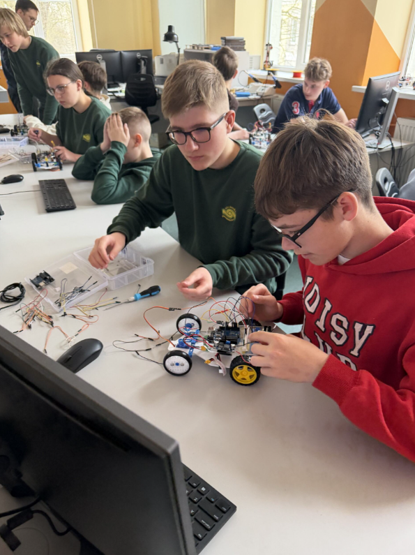 Antrosios veiklos metu mokiniai ėmėsi dar sudėtingesnio iššūkio – robotų konstravimo. Jie ne tik surinko robotus, bet ir sugebėjo juos valdyti taip, kad šie judėtų į abi puses. Darbo metu netrūko emocijų – buvo visko: ir smalsumo, ir juoko, ir net „rūkstančių laidų“, tačiau tai tik dar labiau įkvėpė mokinius ieškoti sprendimų ir nepasiduoti.