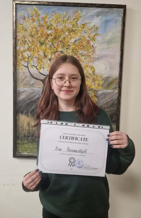 Šiaulių Lieporių gimnazijoje vyko Šiaulių miesto 8–12 klasių mokinių oratorių anglų kalba konkursas, kuriame savo jėgas išbandė 8c klasės mokinė Eva Simonaitytė. Mokinė kalbėjo tema „The Art of Failing: Why Mistakes Make Us Stronger“, kurioje atskleidė nesėkmių svarbą asmenybės augimui, drąsino nebijoti klysti ir pabrėžė, kad būtent klaidos padeda mokytis, tobulėti bei siekti tikslų.
