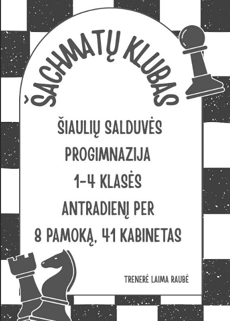 Šachmatų būrelis (1-4 kl.) – tai smagus ir įdomus būdas vaikams mokytis strateginio mąstymo, lavinti koncentraciją bei kantrybę! Užsiėmimų metu vaikai susipažins su šachmatų figūromis, taisyklėmis, bei mokysis pagrindinių žaidimo taktikų. Jie ne tik mokysis spręsti įvairias šachmatų užduotis, bet ir žais partiją su draugais, lavindami gebėjimą mąstyti keliais žingsniais į priekį.